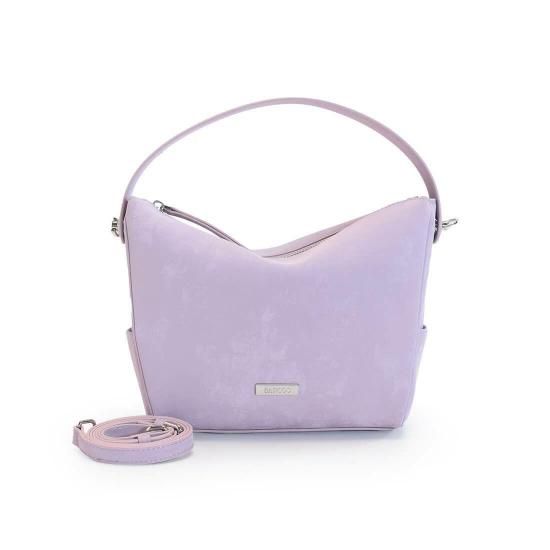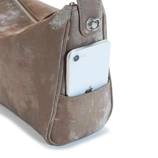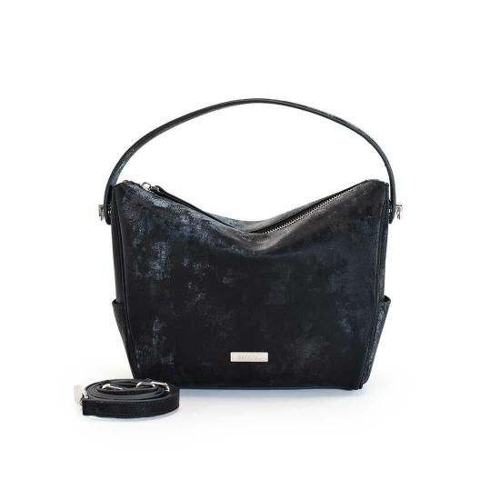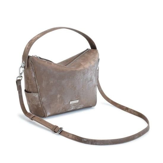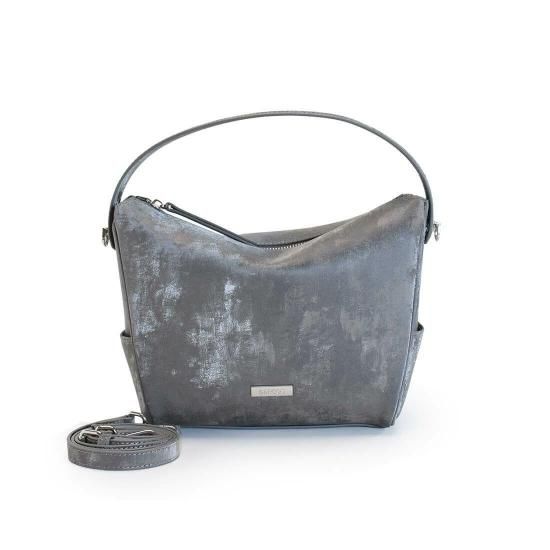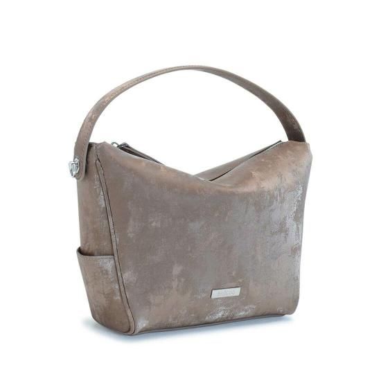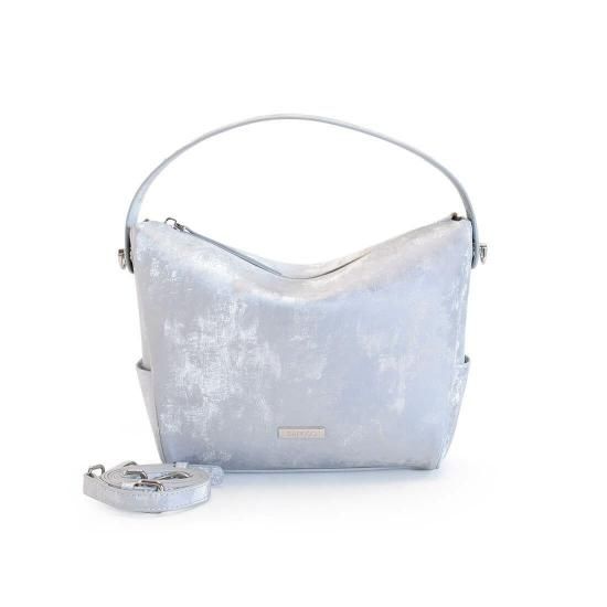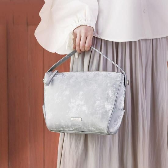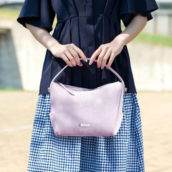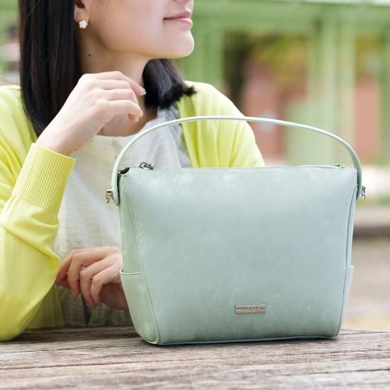 光の当たり方で表情が変わる、シルクの様な肌触りと光沢感を持つレザーを使用したハンドバッグです。