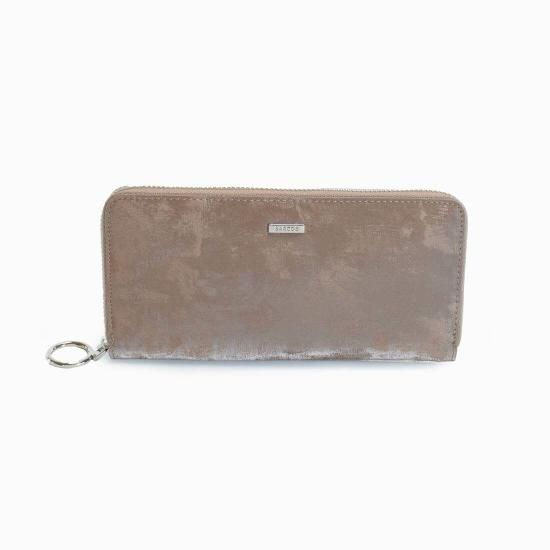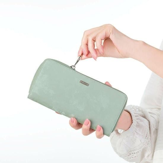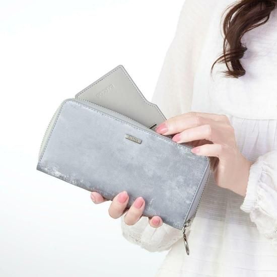 光の当たり方で表情が変わる、シルクの様な肌触りと光沢感を持つレザーを使用した長財布です。