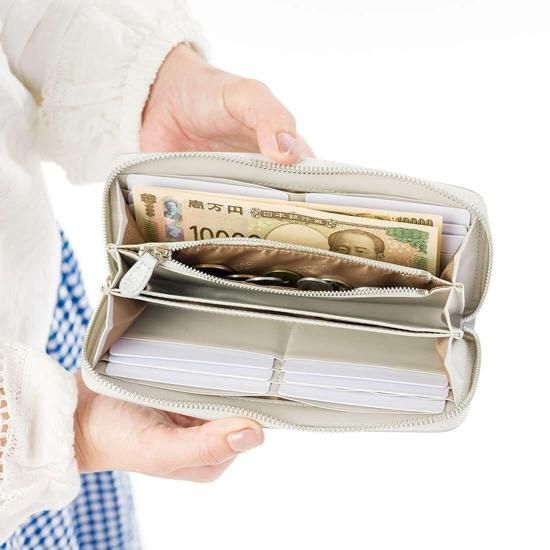 カードが6枚入る独立タイプのカードケースも付いて、計18枚のカードが収納できる長財布です。